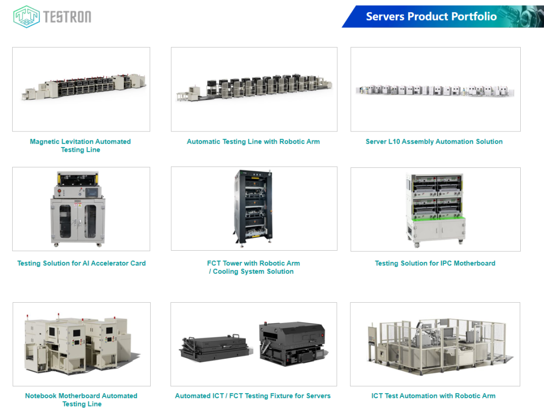 High-performance AI servers demand High-Challenge testing. Our integrated ICT/BSI and FCT solutions—featuring magnetic leviation transmission and precision vision inspection—ensure consistent quality at scale.
